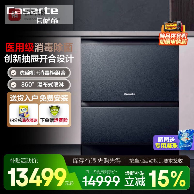 【品牌直营】卡萨帝洗碗机10套抽屉式N11Z中子和美带消毒柜一级水效家用嵌入式洗碗机+消毒柜组合¥