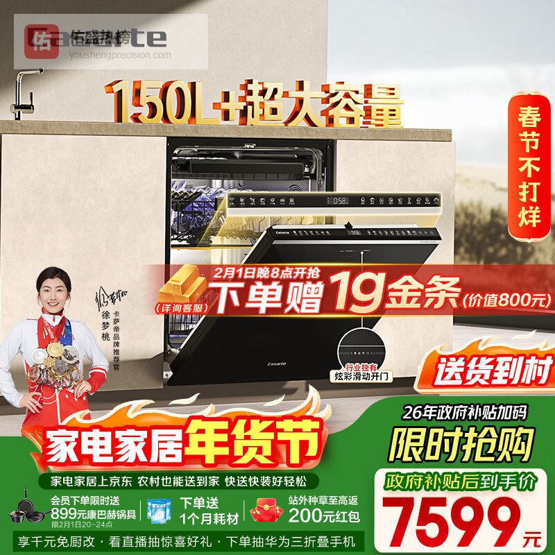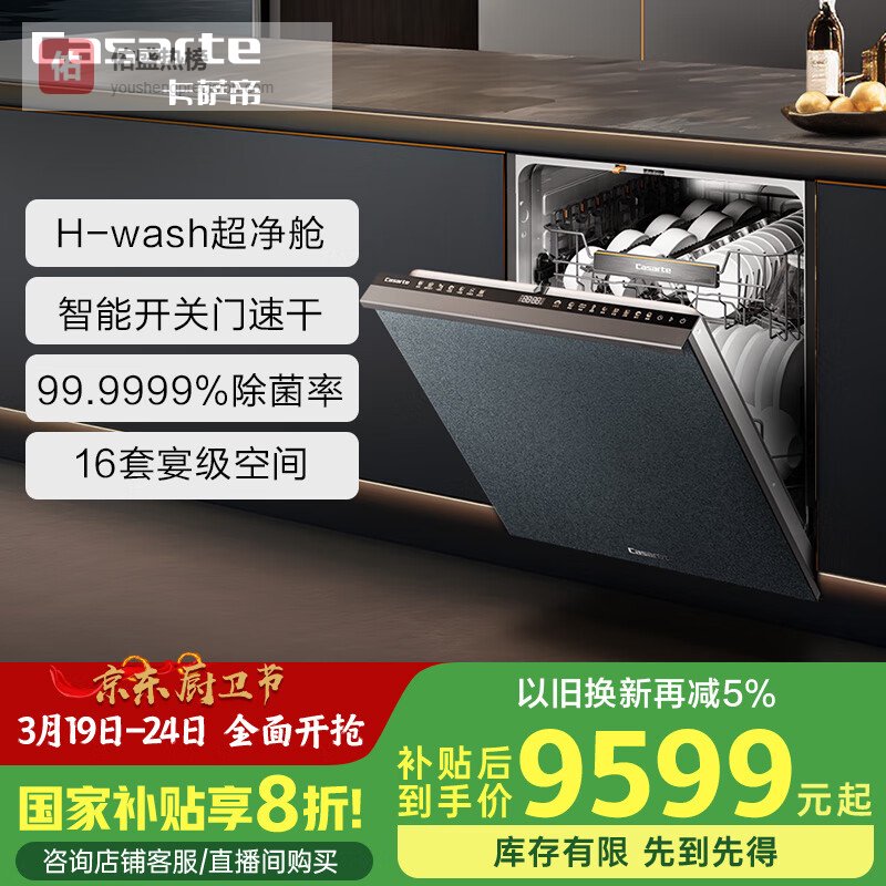 【京东自营】卡萨帝【小炫风Pro】洗碗机嵌入式150L+大容量H-Wash超净舱智能自动开关门速干1¥