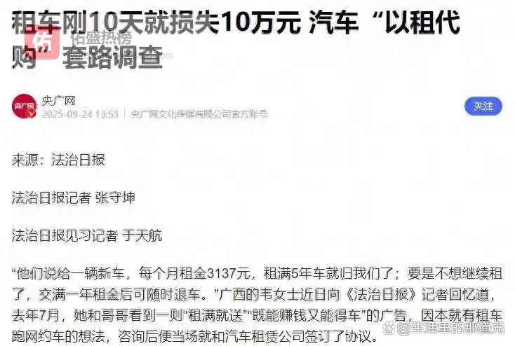 自2024年起,全国各地频现网约车退车难题,以及高额拖车费用的争议事件,此类新闻屡见不鲜。这些问题的背后,几乎无一例外地与“以租代购”的模式密切相关。