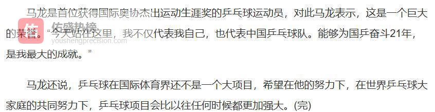 到了2024年,马龙荣获了国际奥协颁发的杰出运动生涯奖项。