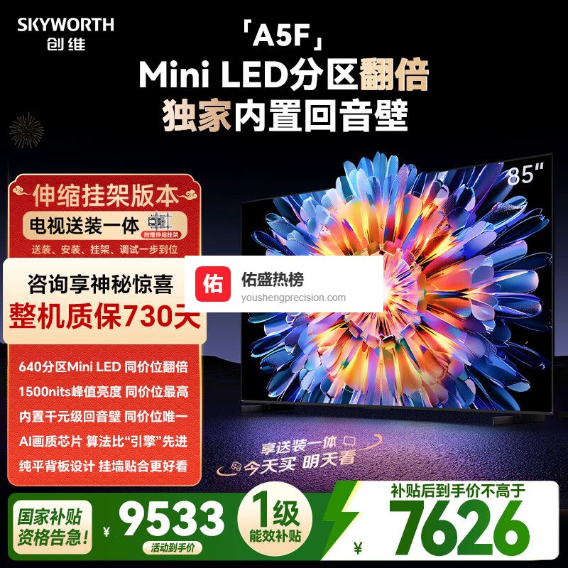 创维电视85A5F 安装版【伸缩挂架送装一体】85英寸 电视机 Mini LED 640分区 液晶4¥