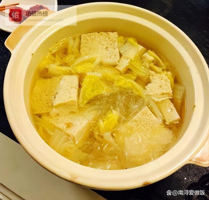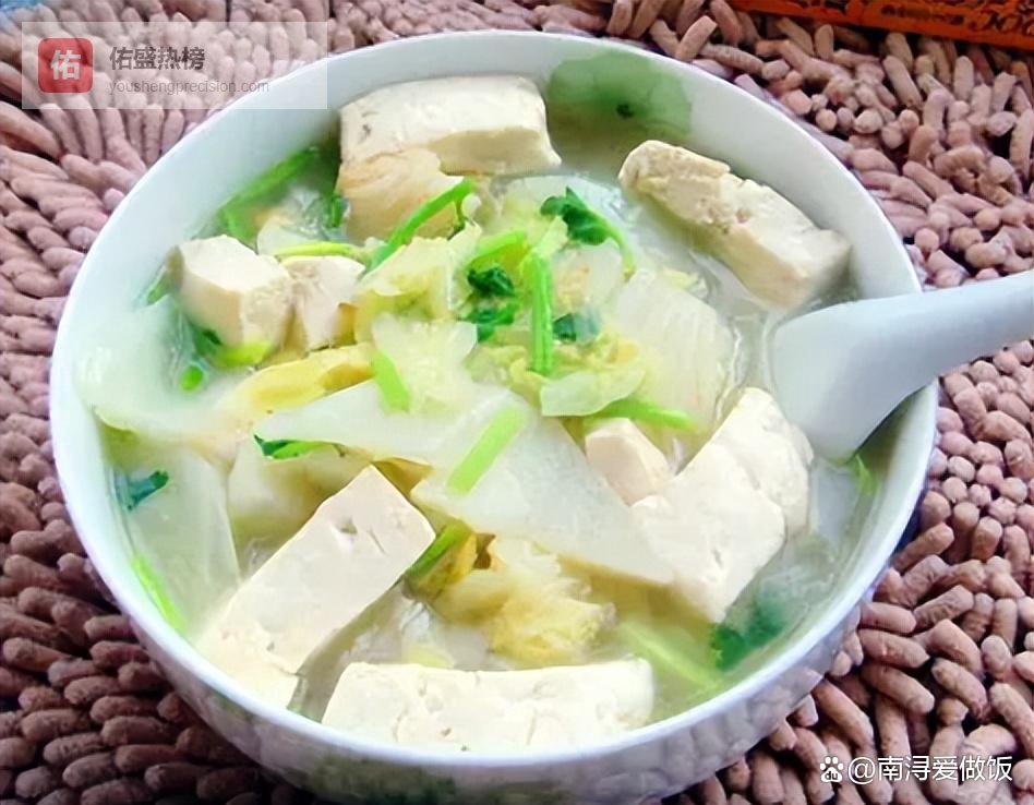 所需食材: 大白菜半颗、嫩豆腐1块、粉丝1把、虾皮1小把、姜末1勺、葱花适量、白胡椒粉适量、香油1勺、盐适量、鸡精少许、食用油适量、清水适量。