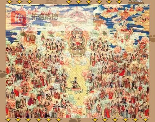 ▣ 3. 坐不背法界之经凡有《华严经》处,必正面对坐;经在左则身在左,经在右则身在右,绝不背经而坐。