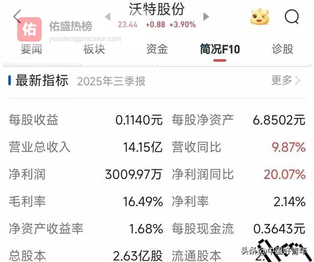 - 财务数据(2025三季报):营业收入14.15亿元,同比增长9.87%;净利润3009.97万元,同比增长20.07%。