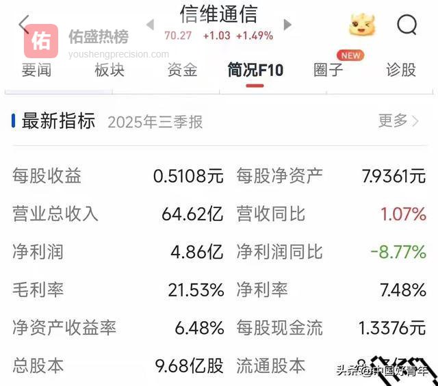 - 财务数据(2025三季报):营业收入64.62亿元,同比增长1.07%;净利润4.86亿元,同比下降8.77%。