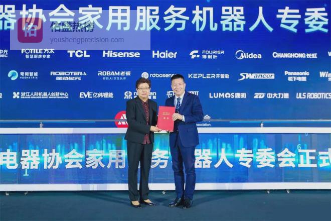 【中国家用电器协会执行理事长姜风为家用服务机器人8家副主任委员单位颁发证书】