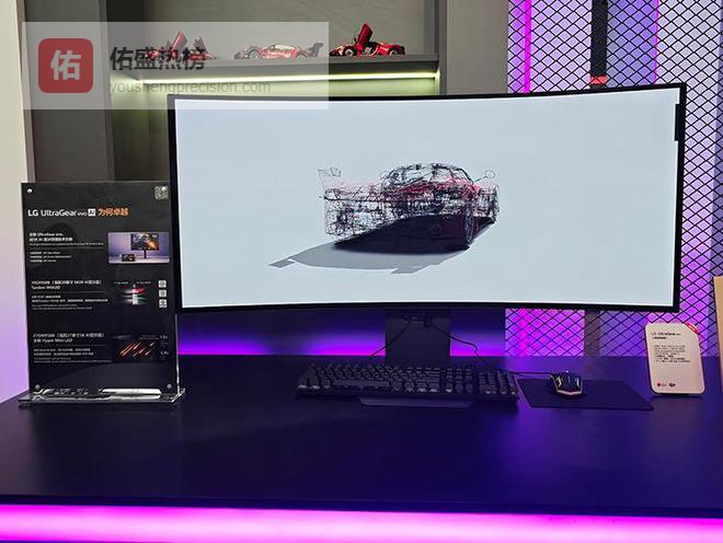 现场首发的LG UltraGear39GX950B带鱼屏旗舰电竞显示器,其采用39英寸Tandem WOLED面板,第四代OLED技术极大地提升了亮度与色彩表现。配合其全球首创的5K AI升频技术,无需升级GPU即可将画面实时提升至5K,而且画面还清晰无延迟。这套AI算法还可以优化音效,让音画表现达到最佳效果。