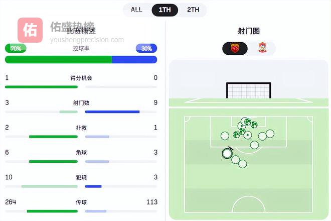 从上半场的统计数据可以看到,上海海港空有70%的控球率,结果射门数3比9处于下风。虽然本队获得的进攻威胁更大一些,但对方的射门打中立柱,更让上海海港球迷揪心。