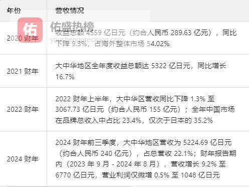 而2024财年前三季度,优衣库大中华区营收就已高达5224.69亿日元,且占整体营收的22.1%。最终,2024财年,优衣库在大中华区的营收增长了9.2%,金额达到6770亿日元(约326亿人民币)。