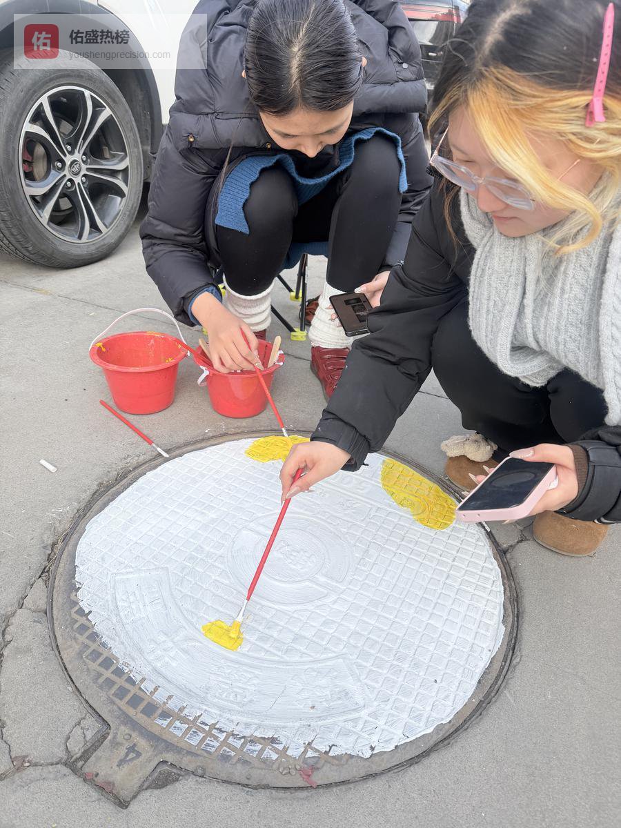 这些井盖是社区请大学生志愿者来画的。那天,孩子们围了一圈认真看着。王智雅说,以前路过井盖都不带瞅一眼,现在倒成了“景点”。