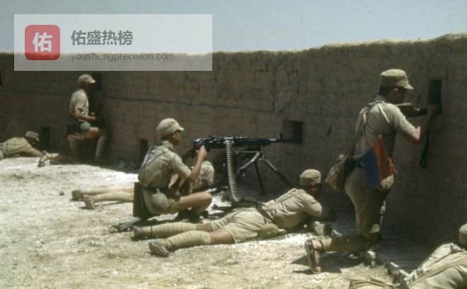 抗战期间,ZB-53曾出现在1941-42年的第三次长沙会战。1941年的陕西潼关。抗战末期的浙东地区。还有1943年的湖北宜昌,哎注意这一挺就是老型号的vz.35,准星是全包的,侧面还有一个固定销孔。