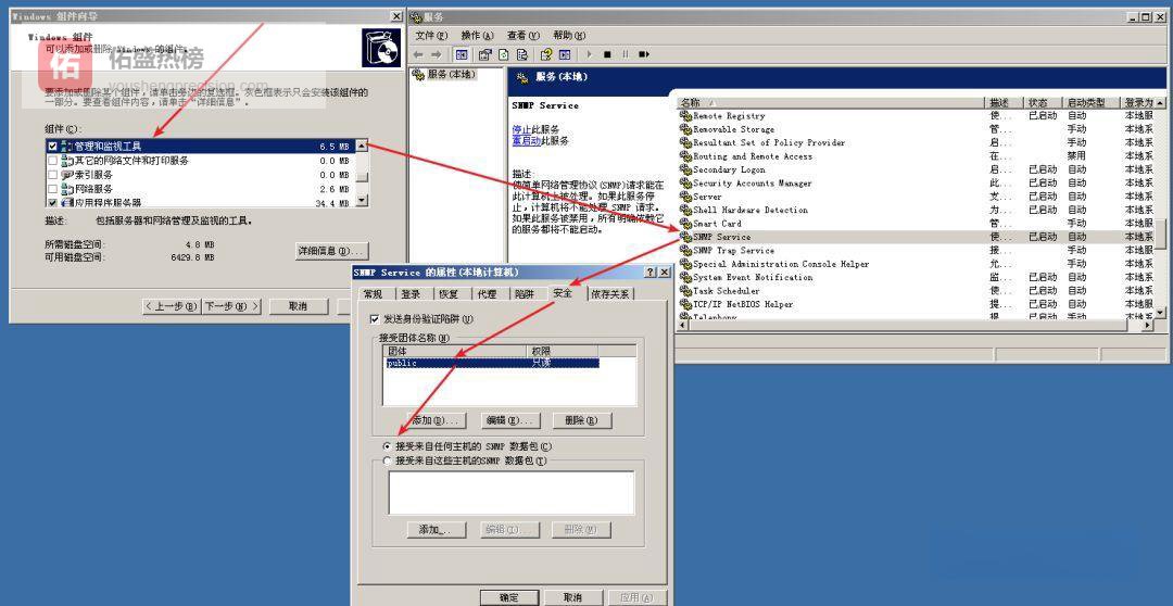 以 Windows 2003 为例,三步即可开启 SNMP 支持: