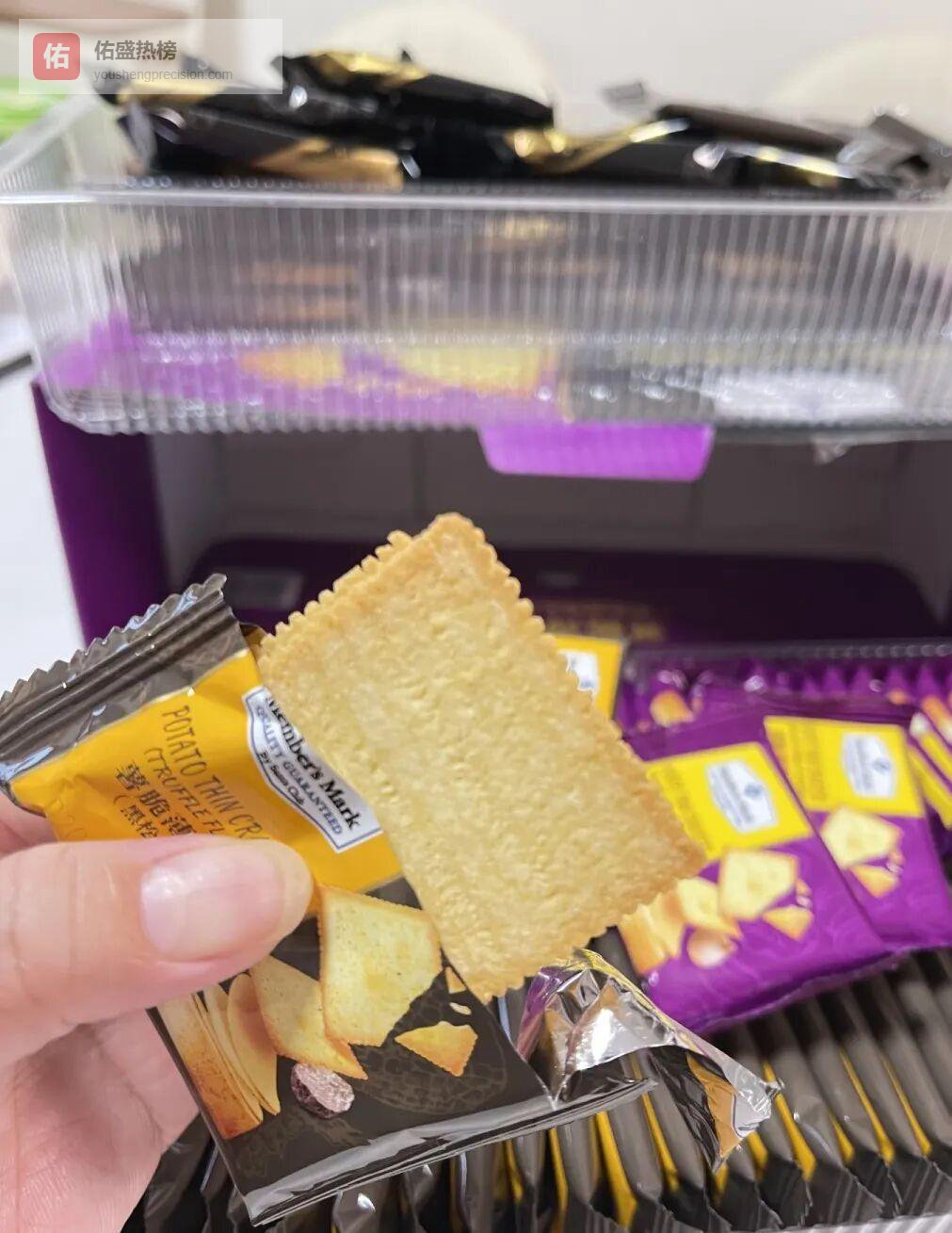 看似普通却暗藏双味:黑松露微甜、黑蒜微辛。甜脆基底把松露的土腥香衬得干净纯粹,蒜味控则能在舌尖捕捉到若有若无的发酵香。一箱两味换着吃,空口能吃出“吃薯条”的错觉,但更酥更薄。