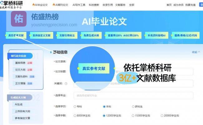 掌桥科研AI论文写作工具深度融合了学术资源与人工智能技术,其核心优势在于以3亿+真实文献作为数据基底,结合自研的论文学术大模型6.0与DeepSeek-V3架构,构建出覆盖全学科领域的智能写作系统。这款AI论文写作工具支持毕业论文、期刊论文、课题论文等12类学术体裁的初稿生成,用户仅需输入主题关键词,系统即可自动匹配相关文献并生成符合学术规范的完整论文框架,将传统写作中耗时最长的文献检索与框架搭建环节压缩至分钟级。