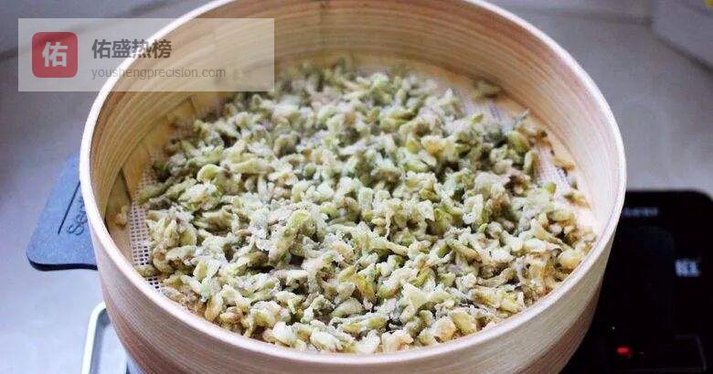 槐花焯水挤干,肉丁用豆面酱、料酒腌30分钟;