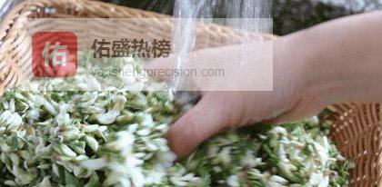 洗净的槐花分几次撒面粉,轻抖拌匀;