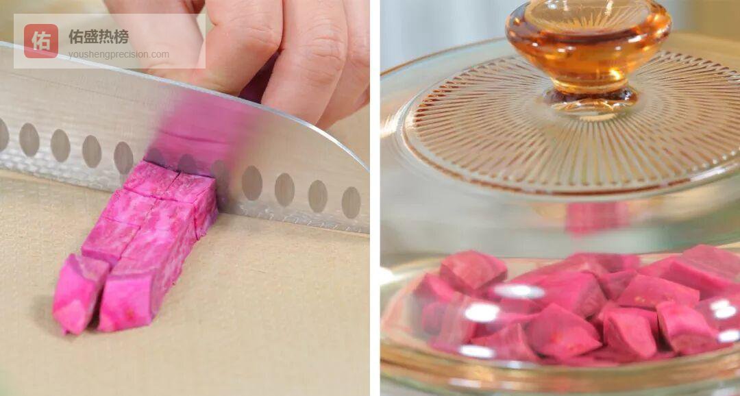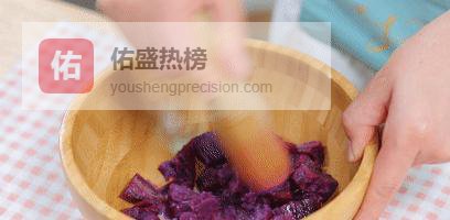 3.2 【 步骤拆解 】蒸紫薯:切小丁后蒸15分钟,筷子轻松插透即可。