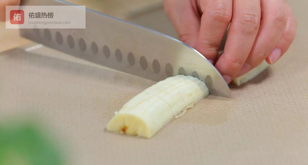 备香蕉:去皮切丁,大小与紫薯丁呼应,方便后续包裹。