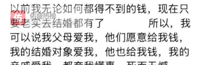 正如那女孩所言,她虽拿到了钱,可这并非她期望从婚姻里获得的。
