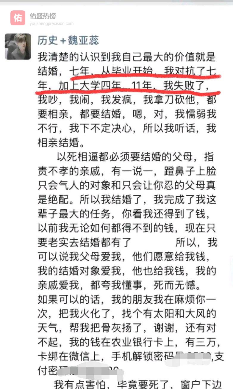 那女子讲,自己这11年都在“打仗”,4年读大学,7年忙工作,除了念书过日子,剩下的日子好像全用来跟爸妈催的相亲“死磕”了,不过,她大概也算是个挺乖的孩子吧。