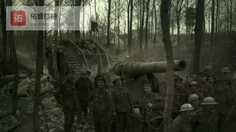 19、英军用坦克牵引缴获的德国5.9寸大炮。