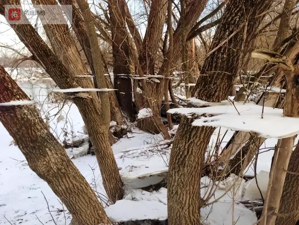 13、洪水褪去后的村落一景水势虽然完全下去了,但寒冷的天气,连冰都悬浮起来。