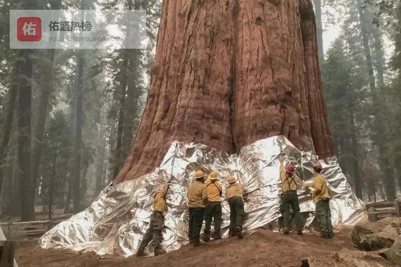 2、消防队员试图拯救世界上体积最大的谢尔曼将军树(2021 年)。