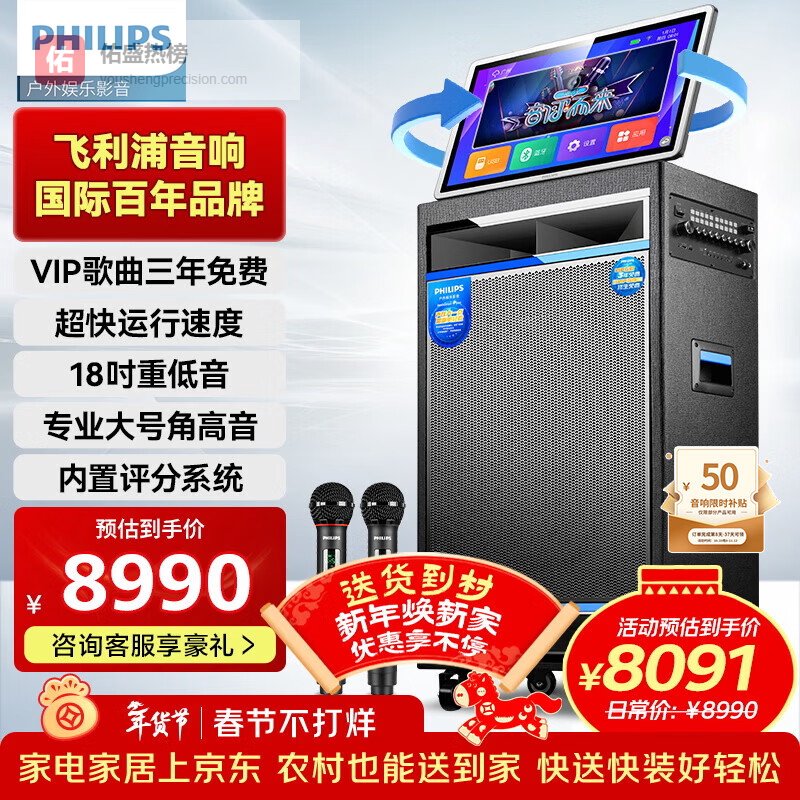 七、飞利浦想象一下,开唱时能让声音四面八方震荡,不用担心漏掉任何一个高音或低频。大喇叭和四面发声设计让你无论站在哪个角落都能享受到立体环绕的音乐体验,重低音升级到18吋,低频深沉得像是有一只大象在耳朵旁边用力踩踏。声音效果实测,唱多了都觉得自己像在演电影,气场十足。