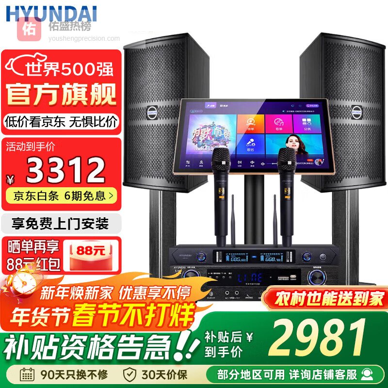 HYUNDAI现代HY10S家庭ktv音响套装唱歌全套设备家用三分频家庭影院家用卡拉ok唱歌全套设备¥