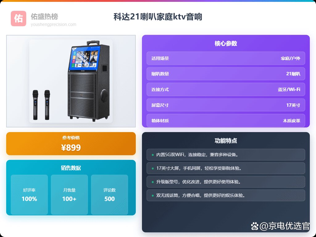 所以说,家庭ktv音响什么牌子音质好?这个问题算是问到点子上了!当然,每个人的需求不一样,喜欢的音色也不一样。选购音响就像选对象,适合自己的才是最好的。不过别担心,为了让大家少走弯路,我特地整理了一些功课,也参考了很多朋友的建议,下面给大家挑了10款,感兴趣的可以了解下。