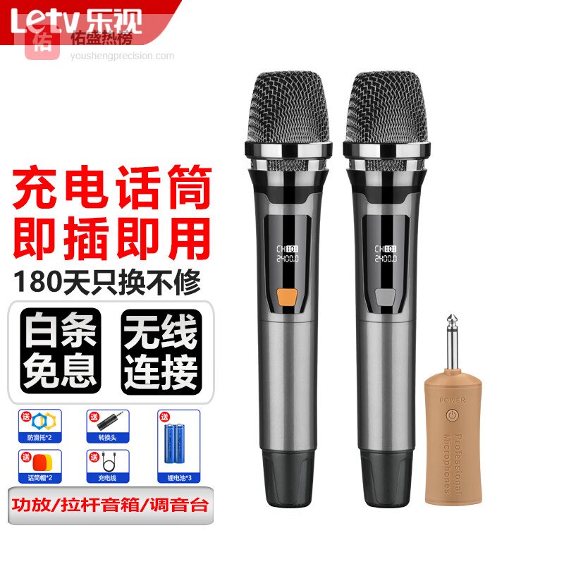乐视TVL2 充电无线麦克风家庭KTV唱歌舞台主持演讲K歌会议音箱音响功放万能话筒一拖二¥