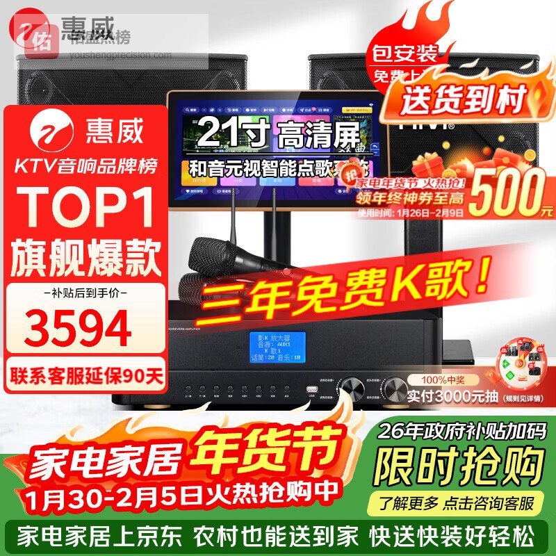 惠威(HiVi)【10w庭选择】KX1000家庭ktv音响套装家庭影院全套设备家用卡拉OK三年免费点歌一体机10英寸低音 套装1:10吋2.0欢唱款【超高性价比】热卖¥