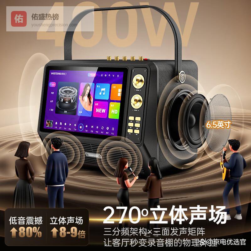 声音效果倒是实测挺棒的,内置专业声卡让麦克风的表现像录音棚一样自然,边唱边充电的反向充电功能特别贴心,直播时不用担心没电跑掉。全木质箱体加皮革包裹,不仅耐用还帮你减少共振,确保每个音符都纯净。搭配无线麦克风,双人合唱也轻松搞定,快乐就是这么简单!