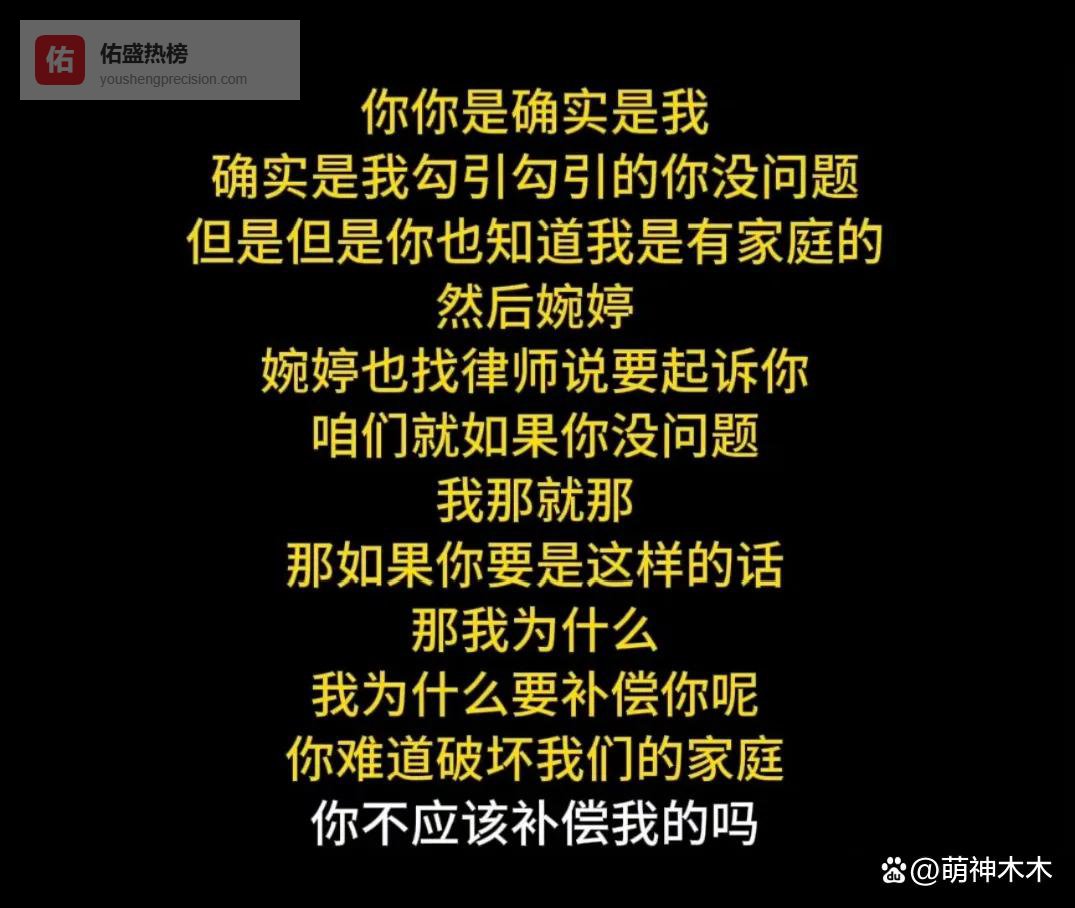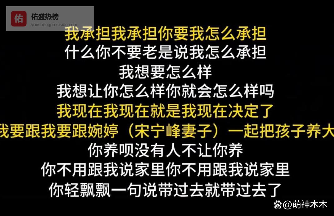 男演员宋宁峰卷入婚内出轨风波,妻子张婉婷被曝拿小三不雅照做威胁,而后宋宁峰带女儿见出轨对象的录音曝光,他还把出轨错误推给小三主动勾引,要让对方承担家庭破裂的赔偿,震碎网友三观。
