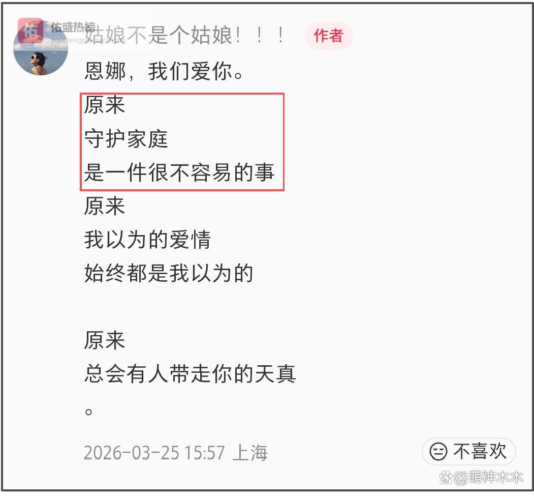 那宋宁峰到底什么时候出轨的呢?扒一扒宋宁峰的社媒就清楚了,翻遍所有的内容,发现宋宁峰主要发的是工作和孩子的生活,张婉婷的存在感很低,上一次出现还是2024年10月,而这也是他最后一次发“我爱你们”系列。“我爱你们”和“可爱的角落”是宋宁峰记录张婉婷和孩子的特有系列,标签统一打了“我的家人”,足见他的重视。