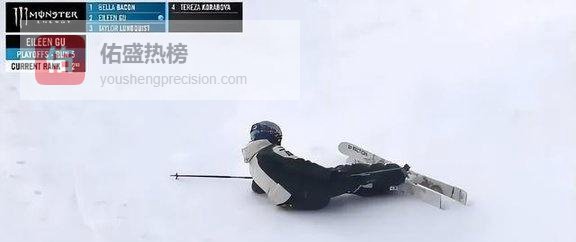 也不怜悯疲惫。起跳、翻转、落地,每一个动作都在用尽身体极限。正是这份拼劲,让谷爱凌在空中准备完成高难度动作时,失去控制。头盔重重砸在冰面上。