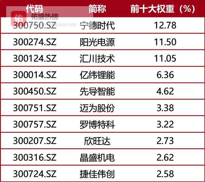 创业板新能源指数(399266.SZ)前十权重股数据来源:国证指数公司风险提示:上述个股仅供展示指数权重,非个股推荐,不构成任何投资建议。时间截至:2026-2-27