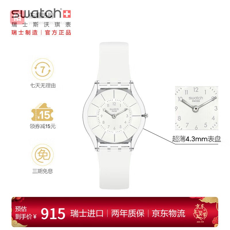 【京东自营】斯沃琪瑞士手表蝉翼白2.0超薄新年礼物男女时尚石英表SS08K102-S14¥
