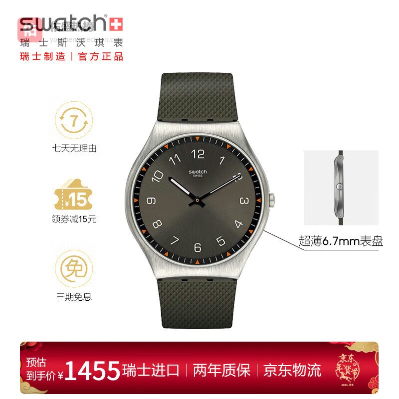 【京东自营】斯沃琪瑞士手表金属超薄系列SKIN墨绿新年礼物商务休闲石英表SS07S103¥