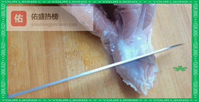 3.2 ▍ 划:表面划刀易入味 控干水分后,用刀在背面轻划两刀,热力更容易穿透。