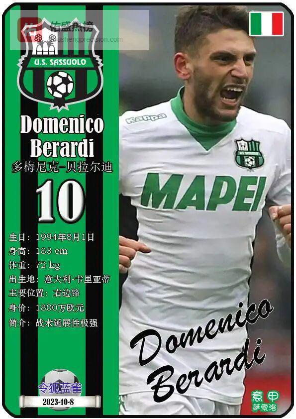 本篇内容数据来源:意见官网-萨索洛足球俱乐部,https://en.legaseriea.it/team/sassuolo/squad