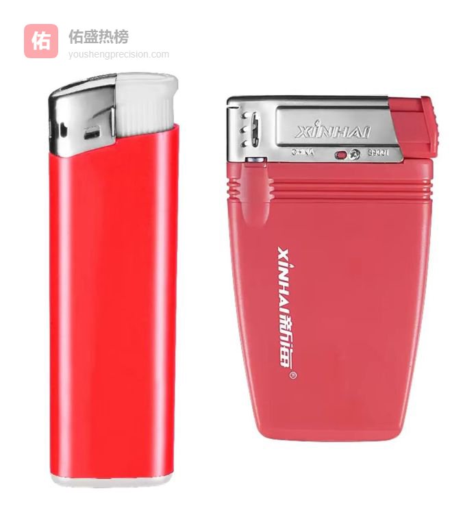 图为新海集团全球首创AS恒流阀打火机(左)/新海集团获33届华交会产品创新奖的超薄打火机(右)
