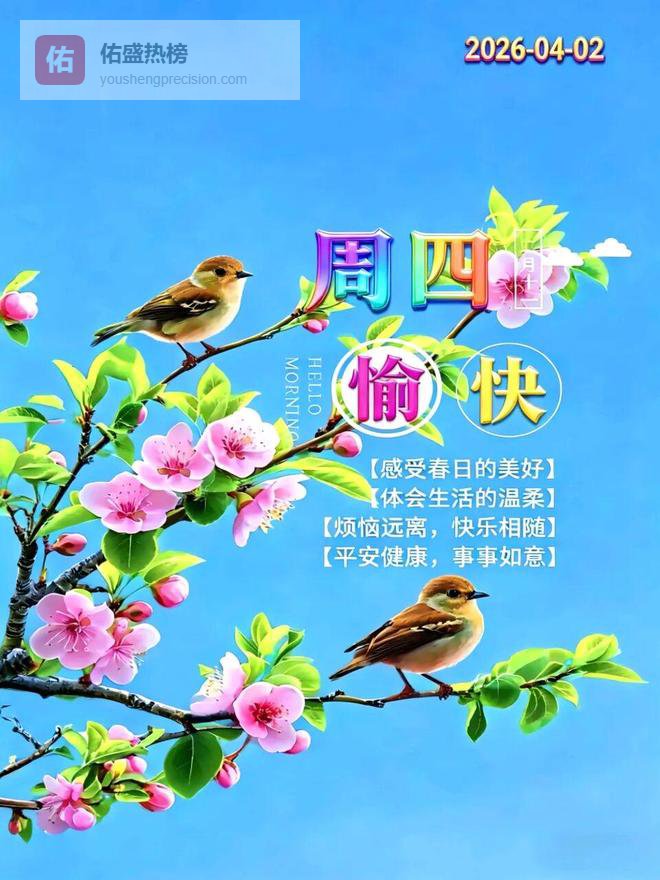 春入四月,暖意渐浓,繁花正盛。和过往的烦恼轻轻告别,把疲惫与焦虑都留在昨天。人生没有完美,幸福没有满分,心安即是归处。揽一缕春风入怀,藏一树花开于心,愿四月的每一天,都承载着健康,浸润着温暖,满溢着幸福。