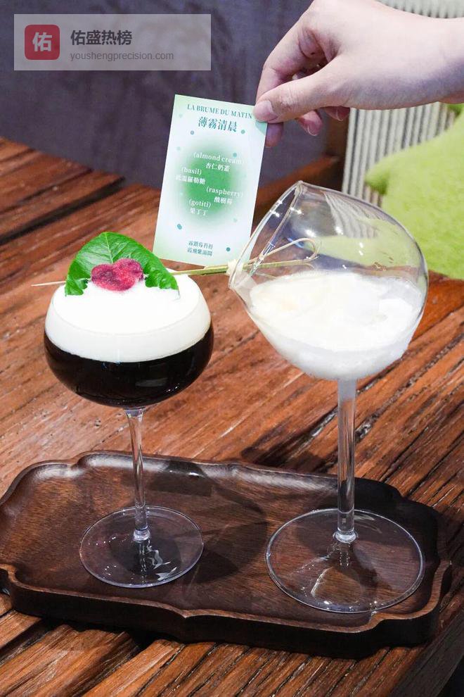 这款特调非常清爽,树莓的明亮果酸被罗勒的草本清香轻轻托住,酸甜之间多了一层植物特有的清新。顶上覆盖一层厚厚的杏仁奶盖,细腻绵密,微咸中带着坚果的香气。