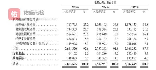 公司该业务的增长主要由康复辅具类产品带动。各期该类产品的收入分别为7.18亿元、10.39亿元及11.78亿元。