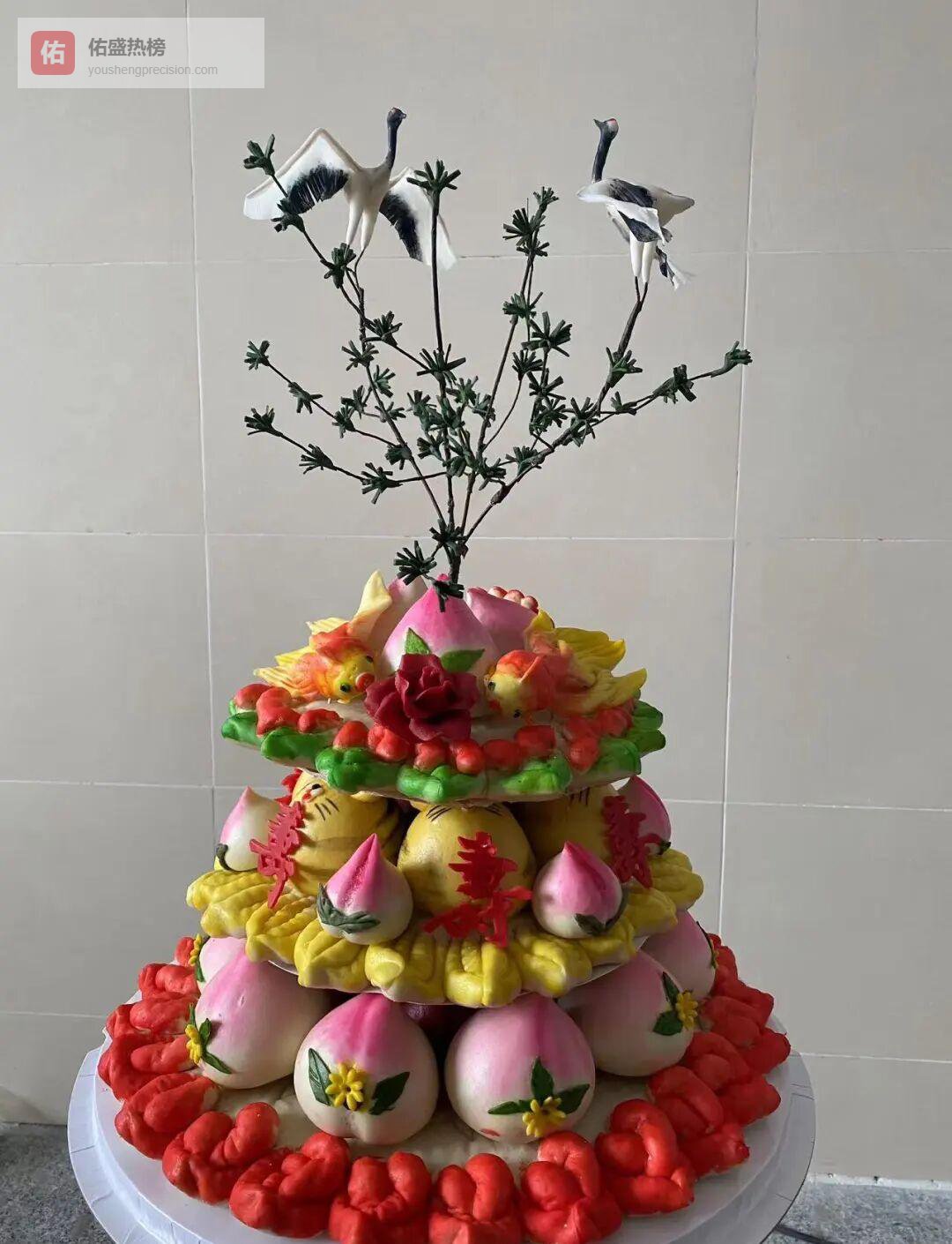 春节将至,五彩斑斓、花枝招展的胶东大饽饽摆满柜台,看着就喜庆。
