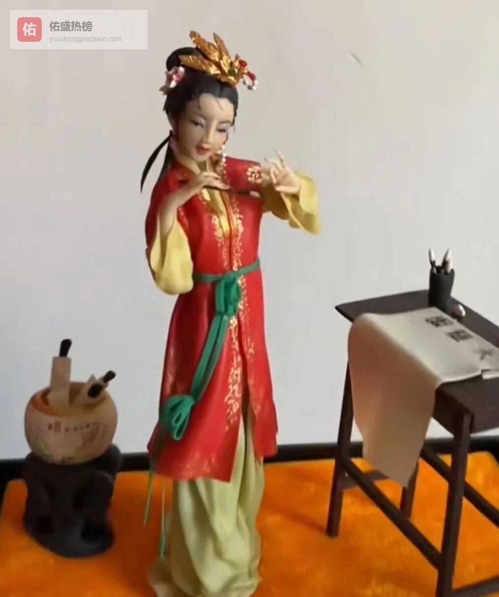 5.2 ◇ 国画写意与现代美学碰撞面部不再靠黑白两色贴片,而是挖眼窝、贴眼白、嵌黑瞳、粘睫毛;手部用竹刀轻勒指节纹路;衣纹借鉴国画写意,留白处恰到好处。