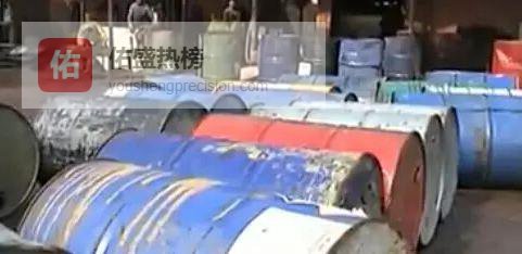 ▲工人徒手撕掉废桶标签,剪片、冲圆、烧色,整套流程像极了“废品大变身”。