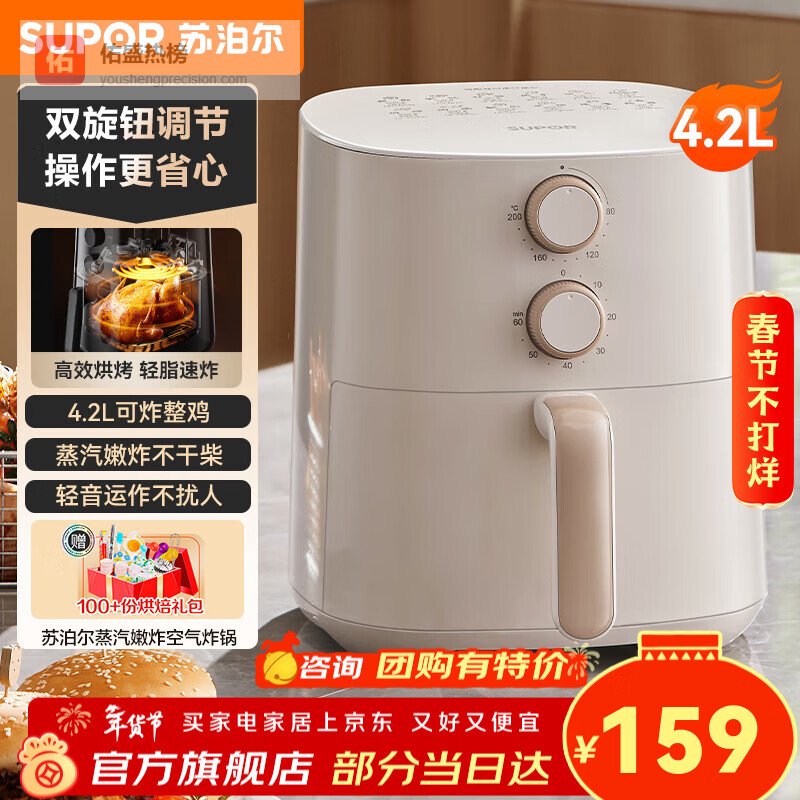 苏泊尔(SUPOR)空气炸锅 家用小型电炸锅 双旋钮控温调时 多功能烤红薯烤串一体机 轻音运作蒸气嫩炸 【轻音运作】 4.2L¥