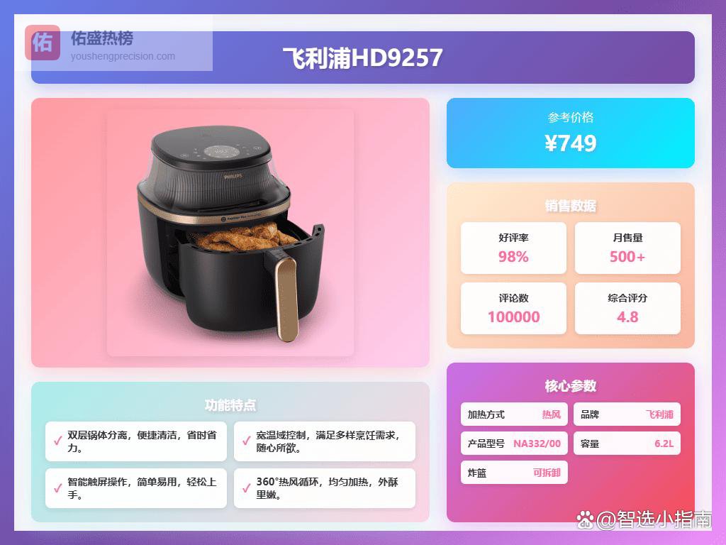 八、飞利浦飞利浦这款空气炸锅采用热风循环技术,能让食物受热更加均匀,外层酥脆不油腻。试用后发现,烤薯条和鸡翅都能达到不错的效果,不会出现局部焦糊的情况。虽然加热速度可以再快点,但整体表现还算挺满意。